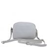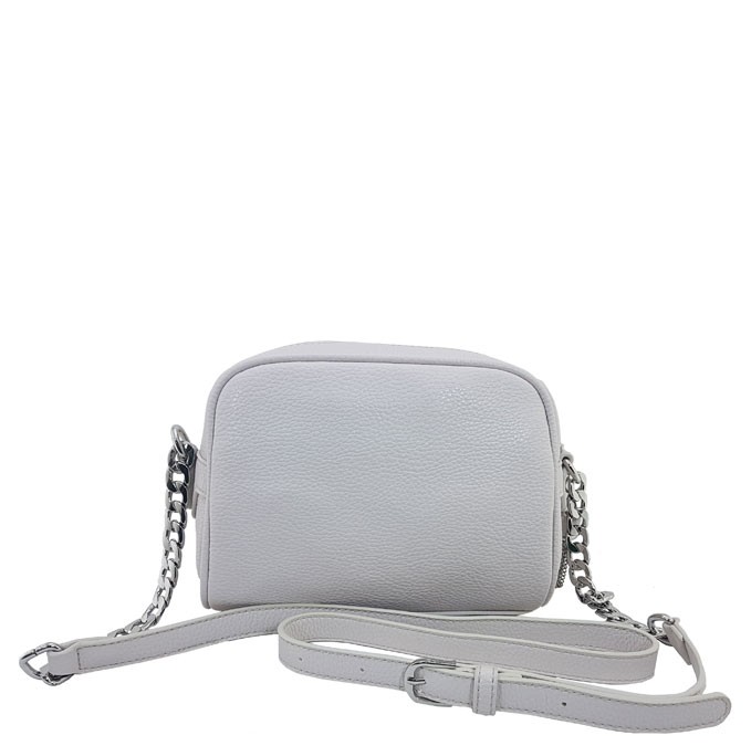 Sac en faux cuir avec sangle d'épaule semi-rigide avec la chaîne, fermeture à glissière, accessoires, pendentif, et des décorations en or de couleur.