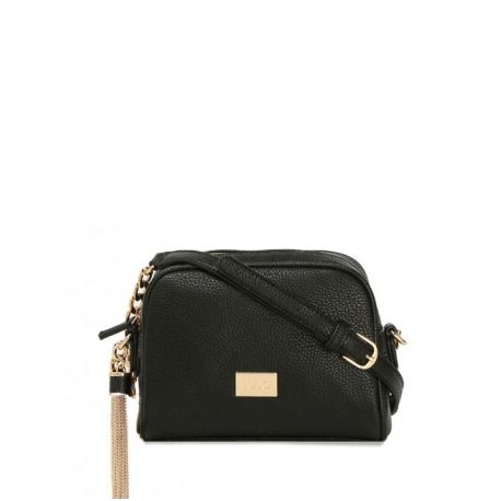 Sac en faux cuir avec sangle d'épaule semi-rigide avec la chaîne, fermeture à glissière, accessoires, pendentif, et des décorations en or de couleur.