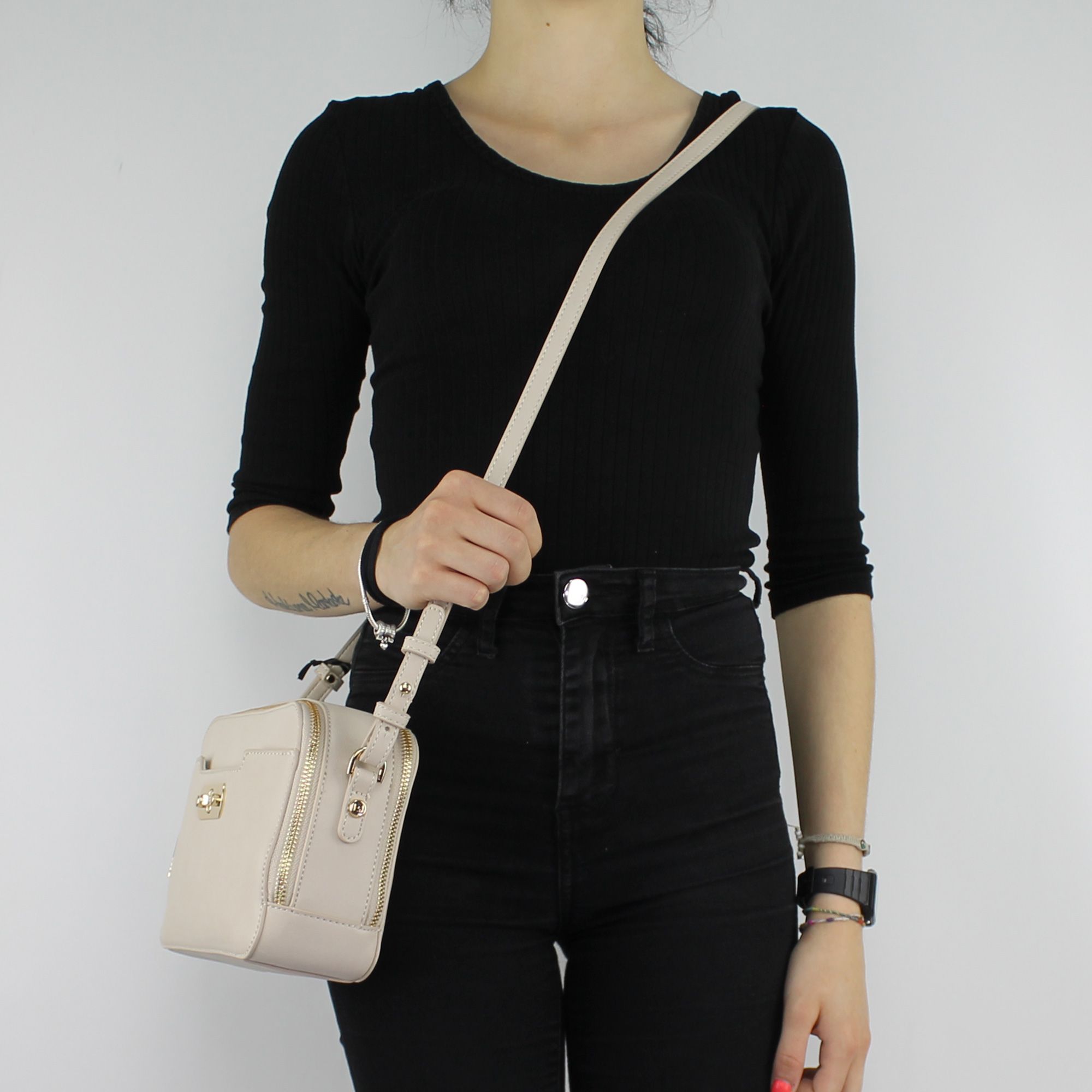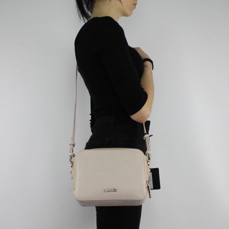 Sac à bandoulière Liu Jo en cuir lisse de couleur de soja, équipé de deux compartiments fermés par zip doré. Le sac a une bandoulière qui peut être ajusté et enlevé pour être porté comme un sac d'embrayage. La face avant dispose d'une petite poche fermée par un anneau de verrouillage logo, tandis que la face arrière comporte le logo de la marque en métal. À l'intérieur petite poche pour les mélanges doublure et revêtement en sable de couleurs de tissu. Sac de protéger de la poussière, y compris l'original.