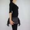 Sac à bandoulière Liu Jo en cuir artificiel noir avec une sangle de chaîne et une médaille d'argent plaqué amovible. Fermeture avec rabat et bouton magnétique. L'avant sont appliquées micro clous et étoiles. Sur les côtés de la sangle d'épaule, à la fois sur l'avant et sur l'arrière, sont appliquées frange de faux cuir noir. Le Lettrage du Logo de la marque, métallisé, argent, appliqué sur le rabat à l'avant. À l'intérieur il y a un seul compartiment principal et deux poches pour les éléments, y compris un refermable avec zip. La doublure la doublure intérieure en tissu bleu. Sac de protéger de la poussière, y compris l'original.