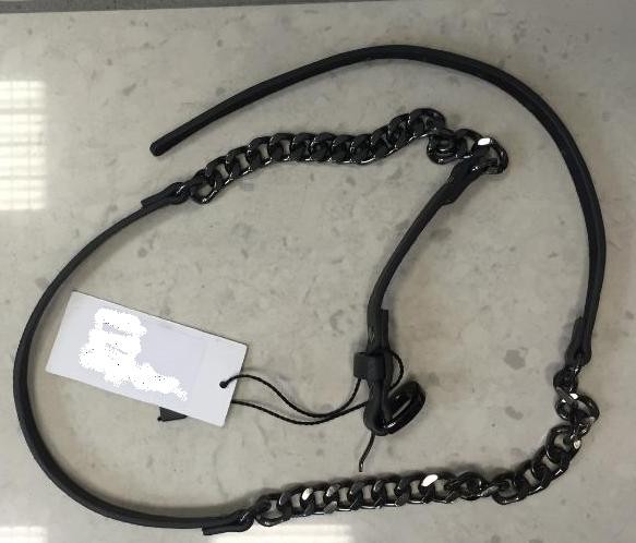 Ceinture en cuir gris et chaine en métal canon de fusil.