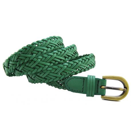 Ceinture cuir tressé vert menthe. Boucle en métal doré et poli.
