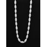 Collier couleur des fils blanc des pierres, verre blanc taillé de forme ovale à facettes géométriques; Fermeture crochet en métal couleur argent poli.