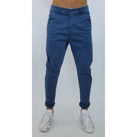 Pantalon, stretch, entrejambe bas, poches à soufflets, de couleur bleu indigo, matériau de coton