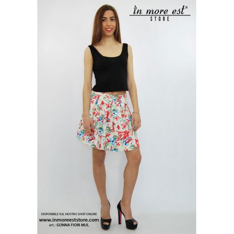 Jupe plissée beige imprimé floral multicolore, matériau coton/poly