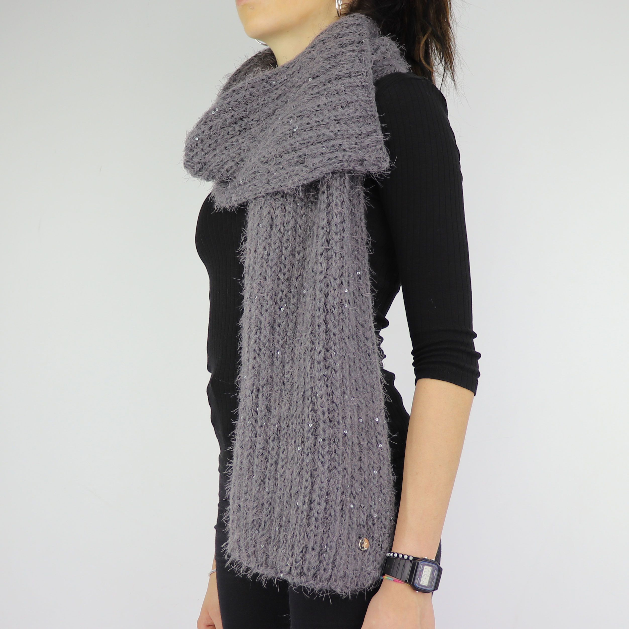 Foulard Liu Jo de couleur gris avec des paillettes qui donnent de l'éclat à l'accessoire. Idéal pour ne pas abandonner le style dans les périodes plus froides. L'écharpe est longue de plus de 160 cm, et d'une petite plaque d'or avec le logo Liu Jo et un strass swarovski.