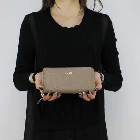 Portefeuille Liu Jo xl arizona en faux cuir de couleur grès, fermeture avec zip autour de. À l'intérieur de compartiments portabanconote, poches portatessere et une poche centrale avec fermeture à glissière pour la monnaie. Doublure intérieure rayée rose et noir. Logo Liu Jo d'or de la couleur appliquée sur le devant.