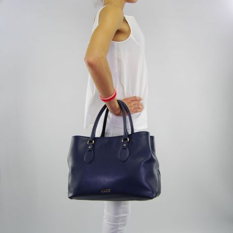Sac Liu Jo angers simili cuir bleu, avec des murs de séparation. Bandoulière amovible et réglable. Il dispose de trois compartiments, le central fermé par zip. Logo Liu Jo et les applications de la couleur d'or. À l'intérieur de petits compartiments de rangement. Sac protéger poussière d'origine inclus.