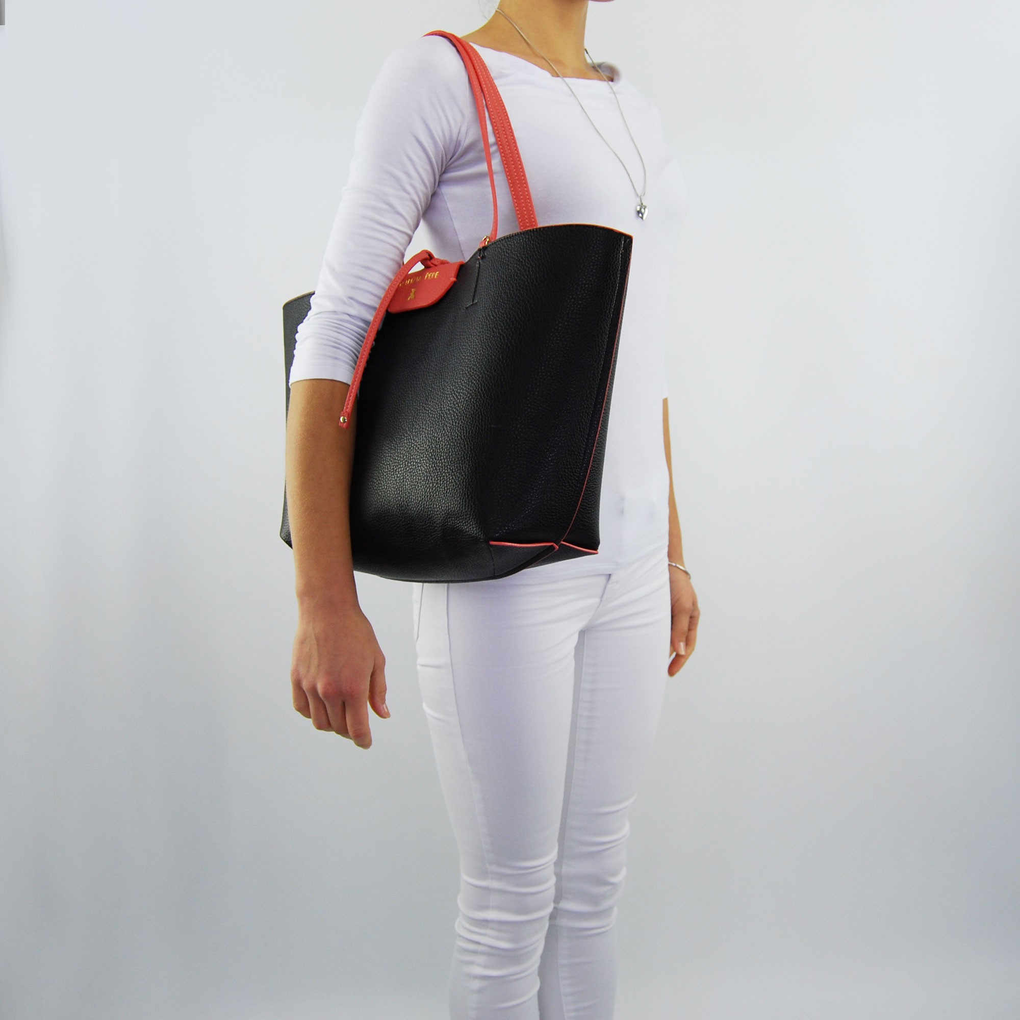 Sac Shopping par Patrizia Pepe réversible rose. Peut être porté par le côté de la rose ou le côté noir avec poignées rose. Logo Patrizia Pepe appliqué sur la face avant. Auto-cravate fermeture auto-tie wrap fermeture. Il est présent à l'intérieur un maxi sac d'embrayage avec poignée amovible et fermeture à zip. Poches intérieures pour les petits objets. Sac de protéger de la poussière, y compris l'original.