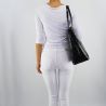 Le sac de la marque Love Moschino tissu brillant noir, couvert sur toute la surface l'impression avec le logo de la marque. Fermeture par zip. Les petites poches de rangement internes, doublure intérieure en rouge. Sac de protéger de la poussière, y compris l'original.