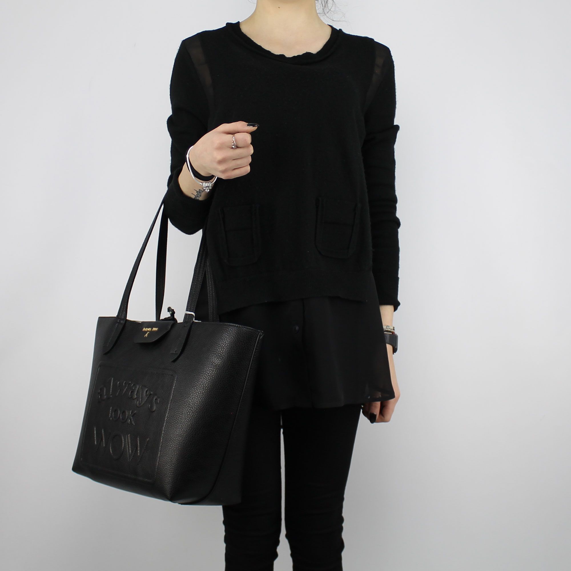 Sac Shopping par Patrizia Pepe en faux cuir noir réversible blanc. Ce panier peut être porté à la fois sur le côté et le total noir, du blanc, poignées latérales en noir. Écrit "toujours REGARDER WOW" imprimée sur la face avant. A l'intérieur il ya une poche avec zip et cordon de sécurité avec snap-crochet permet de le crochet pour le corps du sac, et de garantie de l'union. Le sac intérieur, en plus d'avoir cette utilisation, il peut également être utilisé comme un deuxième sac, et de le porter sur votre épaule grâce au cordon de sécurité qui sont attachées à la boucle approprié devient une pratique bandoulière. Le sac intérieur de petites poches, une avec zip. Le principal carrosserie a deux sangles pour l'attacher à l'extérieur de la clôture. Le logo de la marque est appliquée à la fois à la couleur-les variantes d'utilisation. Le sac est fourni avec un sac de protéger de la poussière de l'original avec l'impression du logo Patrizia Pepe.