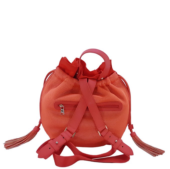 Sac à dos en Nylon technique, détails en Cuir synthétique avec une Saffiano effet, fermeture avec fermeture à pression, grandes poches extérieures, logo plaque, glacé, poche zippée et compartiments internes