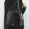 Sac à dos de la marque Love Moschino similicuir noir avec poignée suiperiore pour une prise en main confortable dans la main. La surface du sac à dos dispose d'un tissu avec logo en relief sur la face avant a été appliquée une étiquette en simili-cuir, lisse avec un lettrage en métal de la marque Love Moschino. Le sac à dos est fermé par un zip avec double curseur. À l'intérieur il y a un petit compartiment de rangement, et une doublure de la doublure en tissu avec logo en rouge. Les sangles du sac à dos disposent de boucles pour faciliter l'ajustement de la longueur. Sac de protéger de la poussière, y compris l'original.