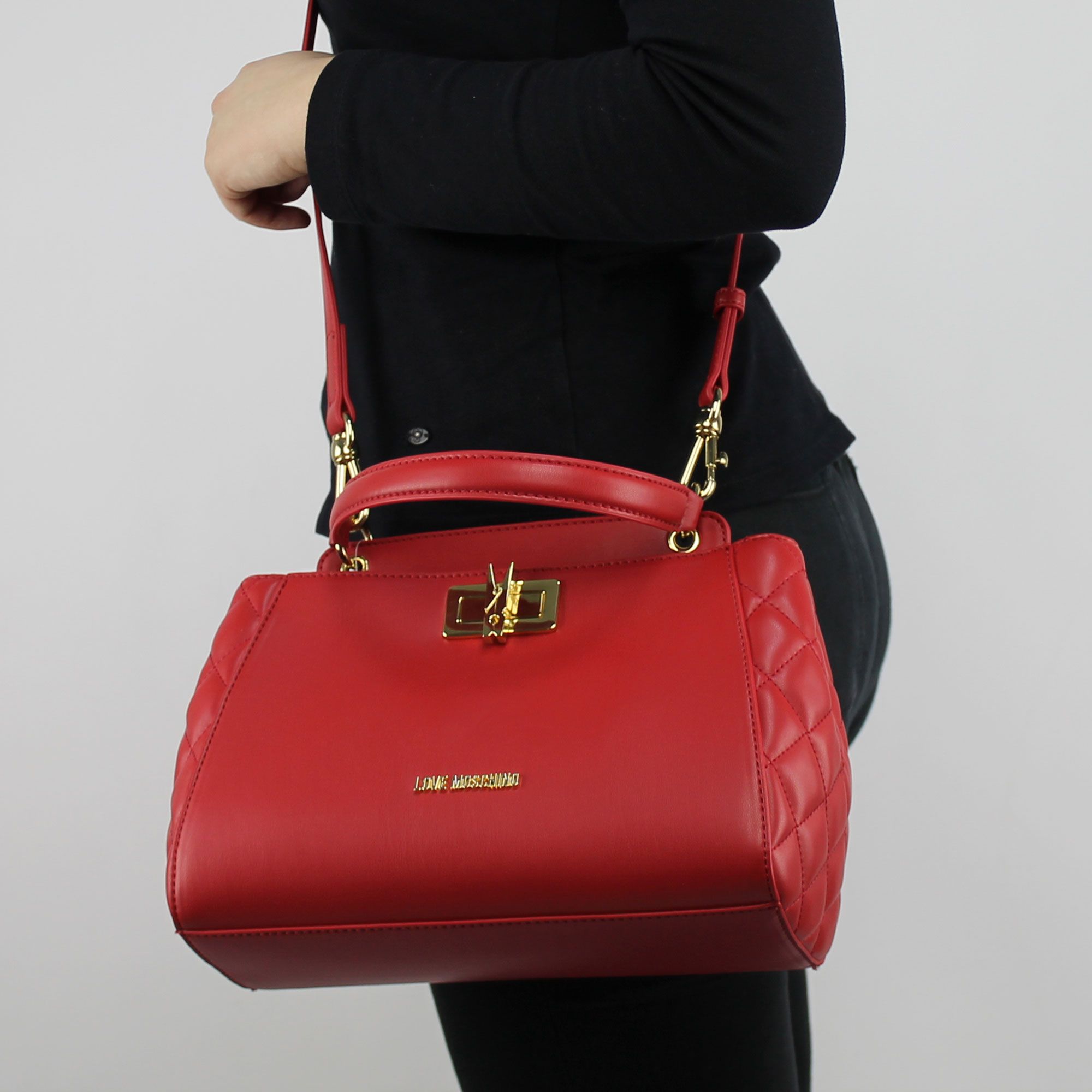 Borsa bauletto Love Moschino rouge en faux cuir lisse à la centrale et matelassé sur les côtés.