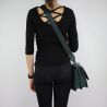 Sac à main et bandoulière Liu Jo effet de cuir de laine et de couleur vert foncé, équipé de poignée unique rejoint le sac à travers des anneaux en métal argenté et d'une bandoulière amovible et réglable à votre convenance. Les vraies plumes sont appliquées sur le sac lui donne une touche d'unicité et de l'élégance. Ce qui rend le sac encore plus sophistiqué est orné rabat de fermeture et fermoir plaqué argent de verrouillage sur lequel il y a des micro-clous et de strass. Le Lettrage du logo de la marque gravé au bas du dos en métal argenté. Le sac est divisé en trois compartiments, la centrale fermée par un zip, elle a aussi une petite poche pour les mélanges. La doublure intérieure est rose et ancienne. Sac de protéger de la poussière, y compris l'original.