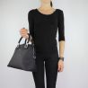 Borsa bauletto Liu Jo en cuir synthétique avec a chuté noir. Le sac de la forme arrondie est équipé de poignées tressées, qui sont joints à la sac à travers des anneaux en métal argenté. Il dispose de trois compartiments, un grand zip verrouillable d'argent et deux de fermable avec bouton magnétique. L'intérieur est rose avec la présence de poches pour les objets de porte. À partir de l'avant, il y est le lettrage du logo en métal argenté. Le boîtier est équipé d'une bandoulière réglable et amovible à plaisir. Sous le sac il y a des pieds de protection. Sac de protéger de la poussière, y compris l'original.