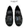 ALLACC/MOCASS NERO COLLO ELASTICO VERNICE/CAMOSC FIBBIE/LOGO AG METAL ARGENTO