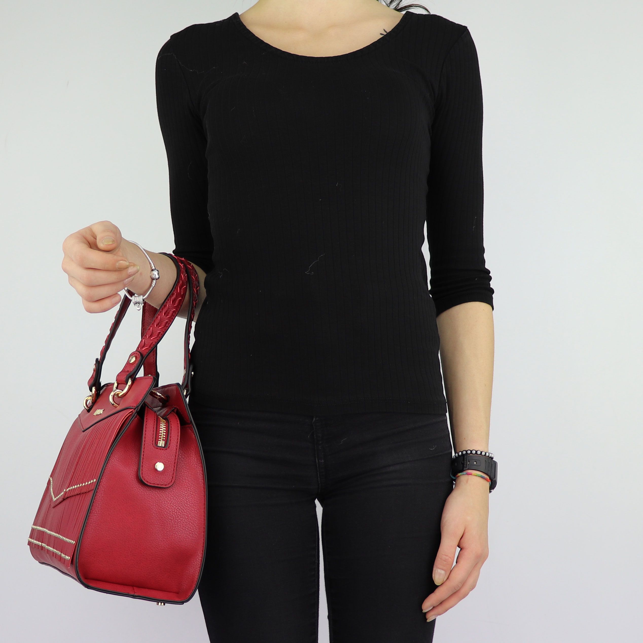 Borsa bauletto Liu Jo rossa in similpelle effetto bottalato. Questa pratica e casual linea a bauletto presenta un unico comodo scomparto chiudibile con zip dorata. La borsa si mostra con morbide frange e microborchie in metallo dorate che donano un look unico ed elegante; all'interno presenta due tasche portaoggetti di cui una chiudibile con zip. La fodera di rivestimento interna è in tessuto rosso. Frontalmente presenta il lettering del logo del brand in metallo dorato. Sacca proteggi polvere originale inclusa.