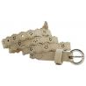 Cintura in pelle nappa colore beige con ricamo a microtraforo.