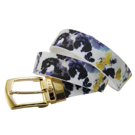 Cinturaliu jo zircone reversibilecon fiori, fibbia in metal di colore oro