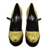 Decollete' alto con plateau, glitter oro, tacco/plateau in camoscio nero