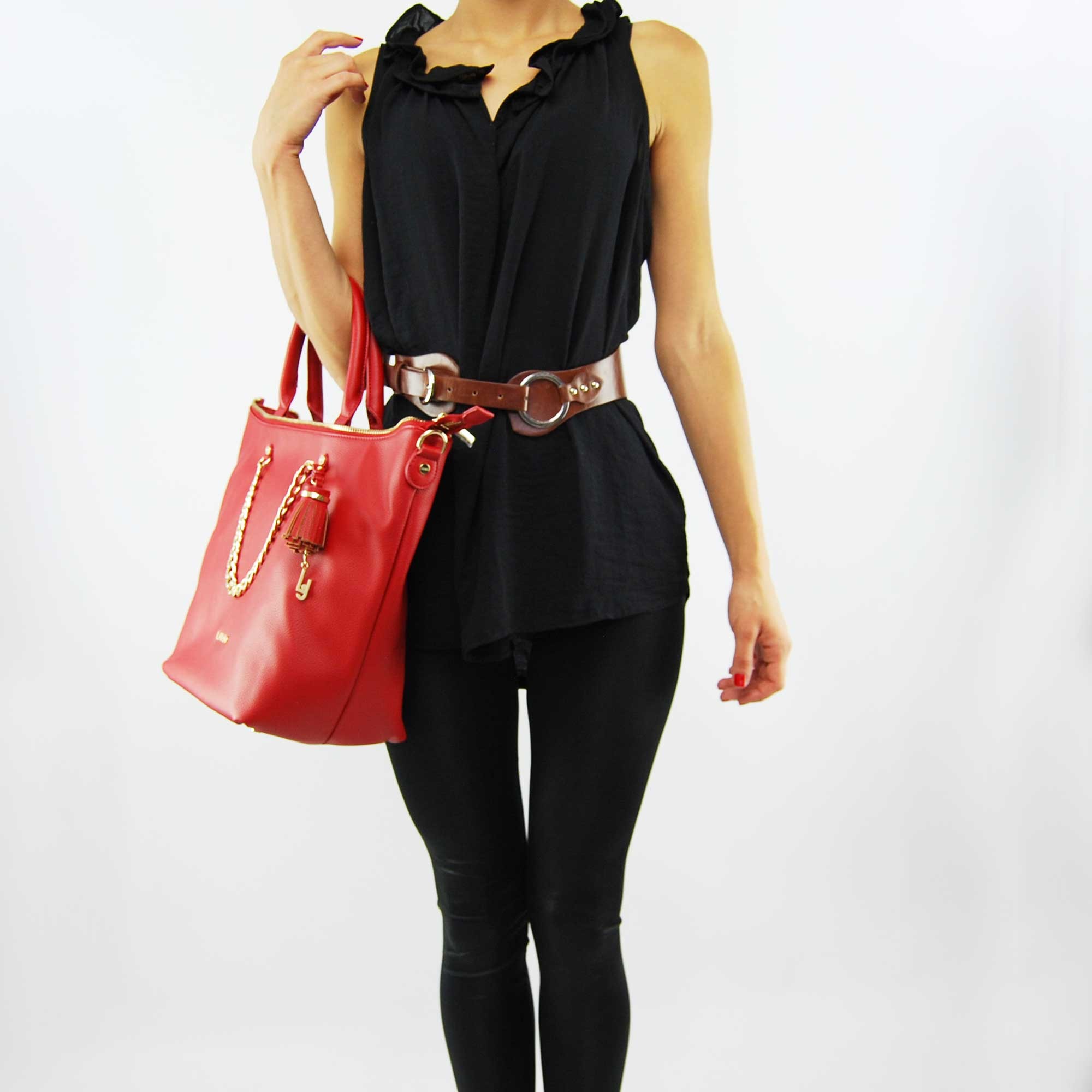 Borsa monospalla Liu Jo poppa in ecopelle color lacca con tracolla rimovibile. Catenella dorata applicata e pendaglio lacca, logo Liujo, applicazioni e doppia zip dorate. Fodera interna color rosa antico e due piccole tasche porta oggetti. Sacca proteggi polvere originale inclusa.