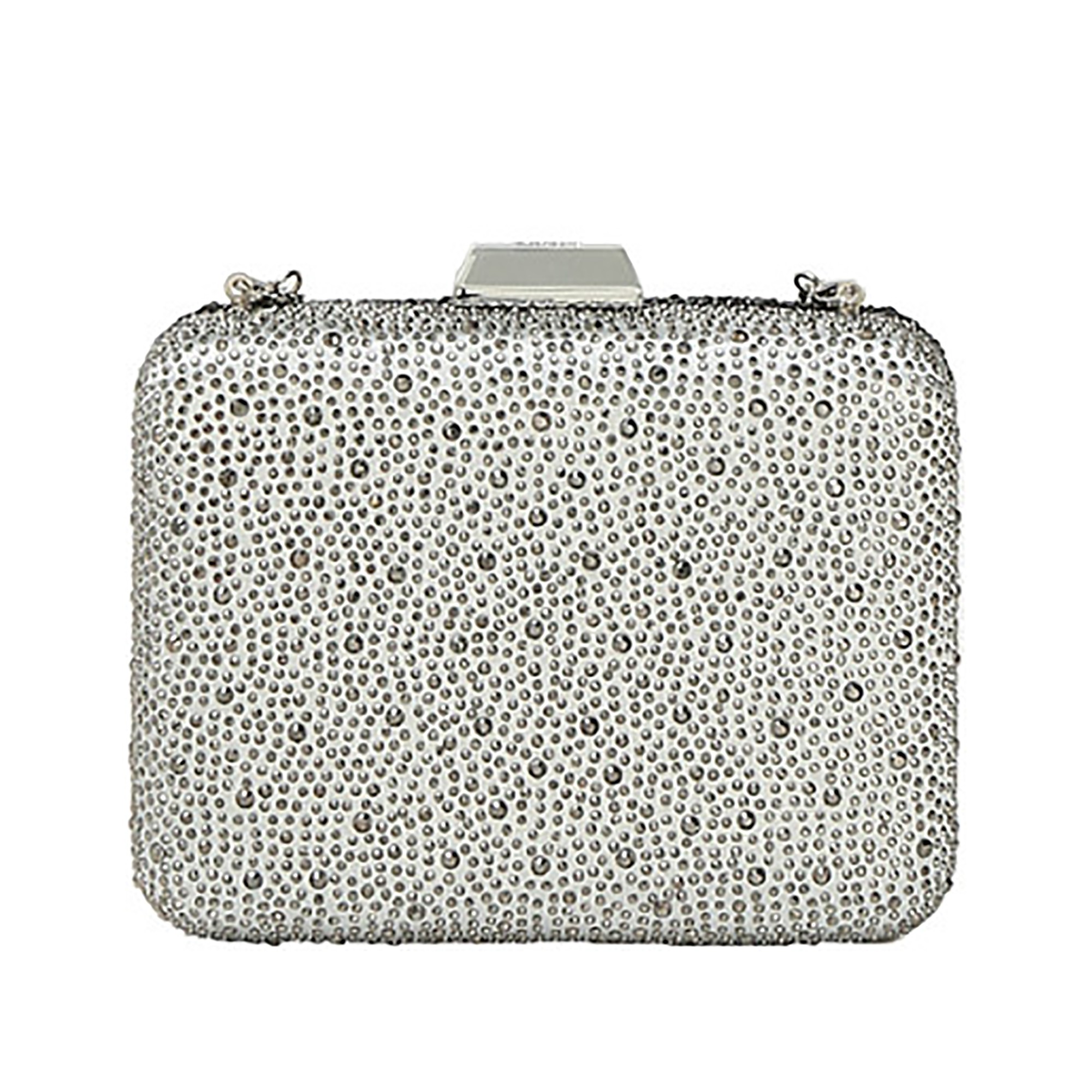 Pochette a mano Clutch Liu Jo primula strass bicolor nera e argento. Realizzata in tessuto e strass. All'interno tasche per riporre piccoli oggetti. Nasce come pochette da mano però viene dotata anche di una tracollina metallica per l'utilizzo a spalla.