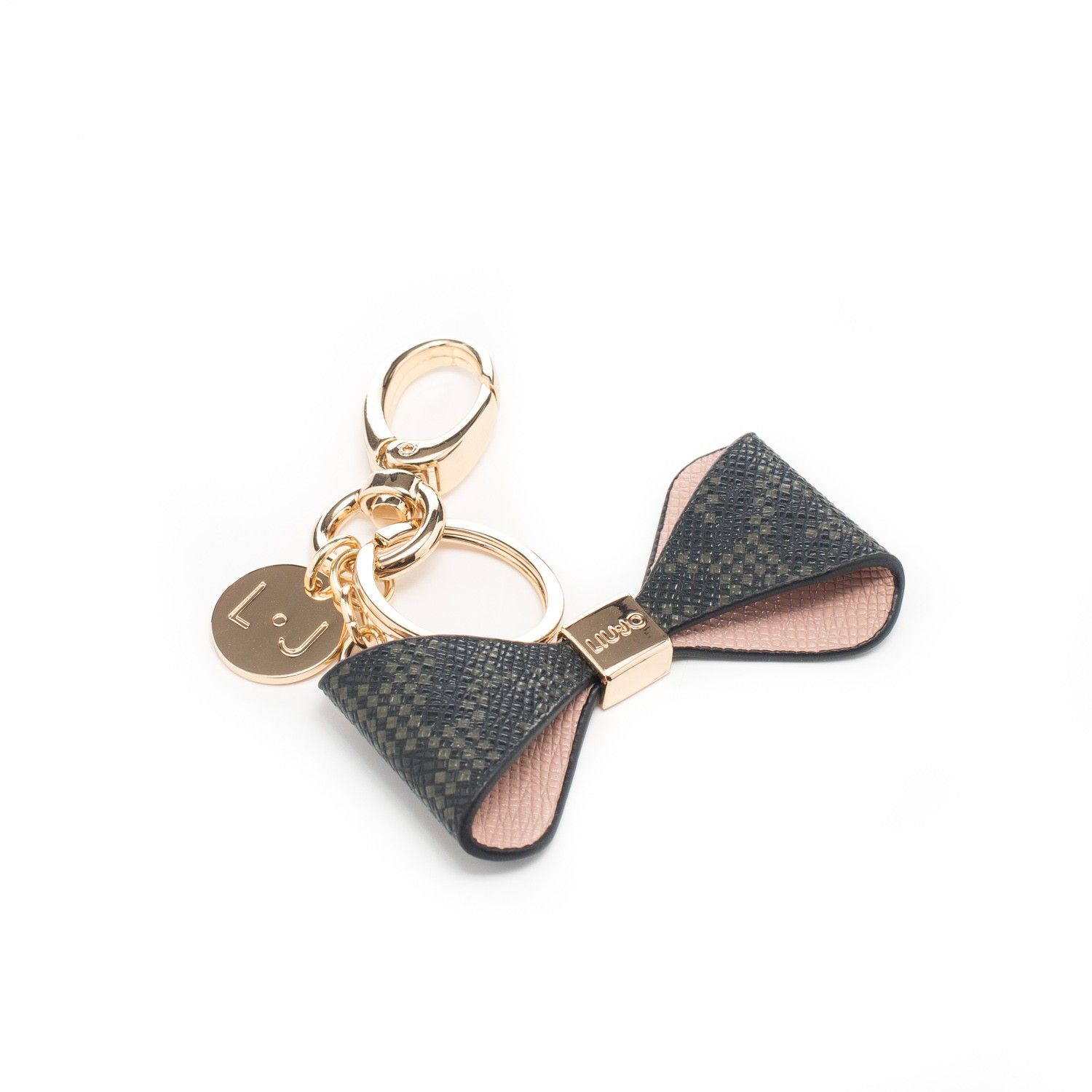 Portachiavi Liu Jo key ring calla militare a forma di fiocco, dotato sia di anello che di gancio color oro. applicazione di un piccolo ciondolo dorato con logo Liu Jo.