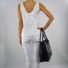 Borsa shopping Versace Jeans in ecopelle nera rigida, dotata di doppio manico. chiusura con zip dorata. Presenta un motivo dorato nella parte frontale. All'interno piccola tasca portaoggetti, fodera interna color nero. Sacca proteggi polvere originale inclusa.