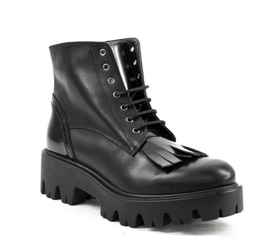 Biker in pelle con dettagli frange in punta, interno Eco, suola gomma, Made in italy