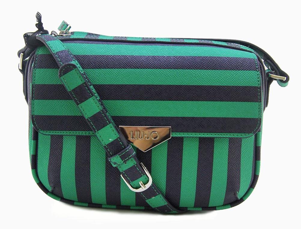 Borsa liu jo in ecopelle motivo Saffiano con disegno a righe dotata di tracolla regolabile e tasca con patta e automatico. Chiusura a zip e dettagli color argento.