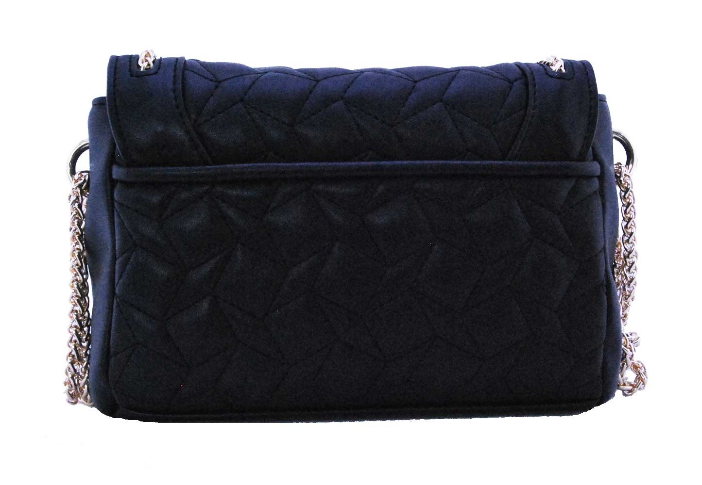 Tracollina in similpelle matelassé con catene a motivo, targhetta gold personalizzata, tasche interne e chiusura con bottone magnetico.