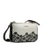 Borsa in ecopelle con disegno a fantasia, dotata di tracolla non removibile e tre comodi scomparti con chiusura a zip. Decorazioni e dettagli dorati.