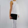 Borsa tracolla Twin-Set in tessuto vellutato nero, con tracolla rimovibile. Chiusura con patta e bottone magnetico. Logo Twin-Set color argento applicato nella parte frontale della borsa. All'interno piccola tasca portaoggetti, fodera interna color rosa antico. Sacca proteggi polvere originale inclusa.