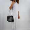 Borsa a spalla Love Moschino in tessuto lucido nero, ricoperta su tutta la superfice da stampa con logo del brand. Chiusura con patta e bottone magnetico. All'interno piccole tasche portaoggetti, fodera interna color rosso. Sacca proteggi polvere originale inclusa.