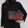 Borsa tracolla Love Moschino in similpelle nera. Il logo del brand, rosso contornato di nero, è applicato nella parte frontale e per quasi tutta la sua estensione. Chiusura con patta e bottoni magnetici; applicazioni argentate. All'interno presenta una tasca portaoggetti ed un tessuto di rivestimento rosso. Sacca proteggi polvere originale inclusa.