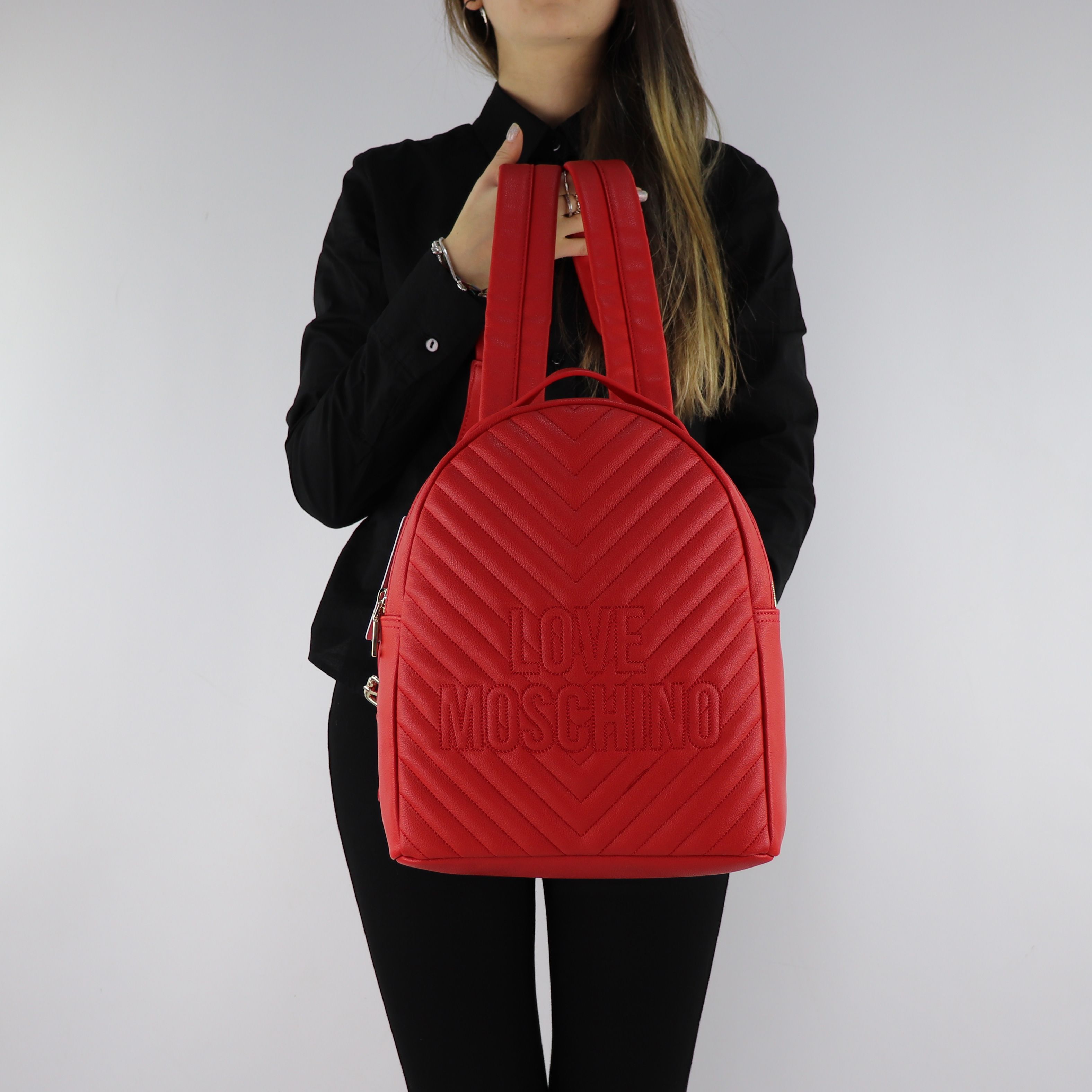 Zaino Love Moschino® realizzato in similpelle, caratterizzato per il suo logo ricamato dal gusto pop sul davanti. Essendo uno zaino perfetto per ogni tuo tipo di outfit è molto ricercato per la collezione autunno inverno 2018-2019 . Al suo interno presenta un unico scomparto foderato con tessuto nero lucido molto elegante e completamente ricoperto dalla stampa del logo della nota casa di moda Moschino. All'interno dello scomparto principale ci sono due taschine laterali di cui una con chiusura a zip. La chiusura è con zip che ne assicura una perfetta chiusura. Questo zaino Moschino è stato presentato come accessorio di grande stile e semplicità. Zaino dal design raffinato e dalle linee versatili vi farà distinguere ovunque. Viene spedito con la sacca proteggipolvere originale inclusa. In queste foto potete ammirarlo nel colore rosso e con le altre applicazioni metalliche dorate.